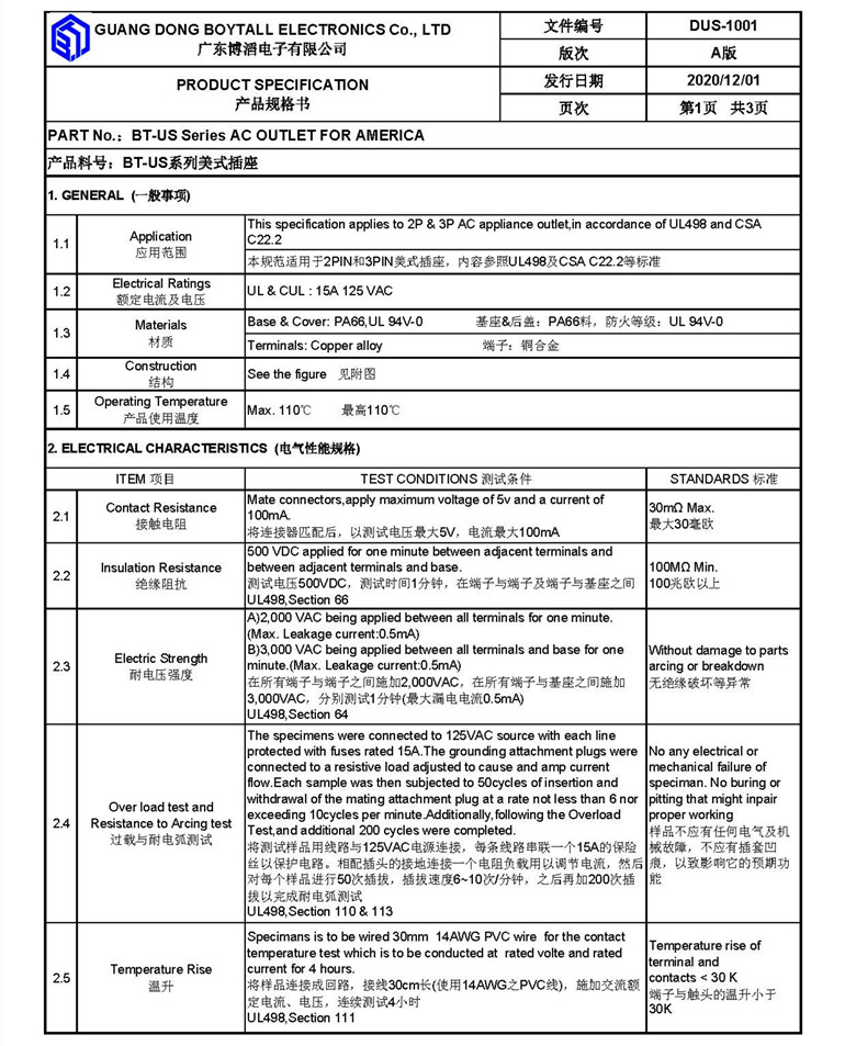 Your current location > Home > Product list- American standard socket series - BT-US2-01