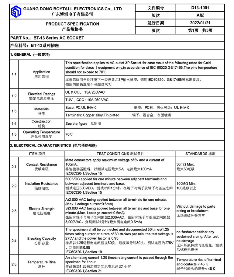 Your current location > Home > Product list- C13 socket series - BT-13-1A-S2