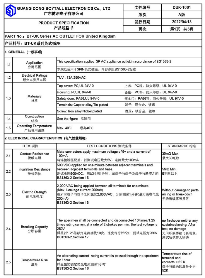 Your current location > Home > Product list- British socket series - BT-UK-1B