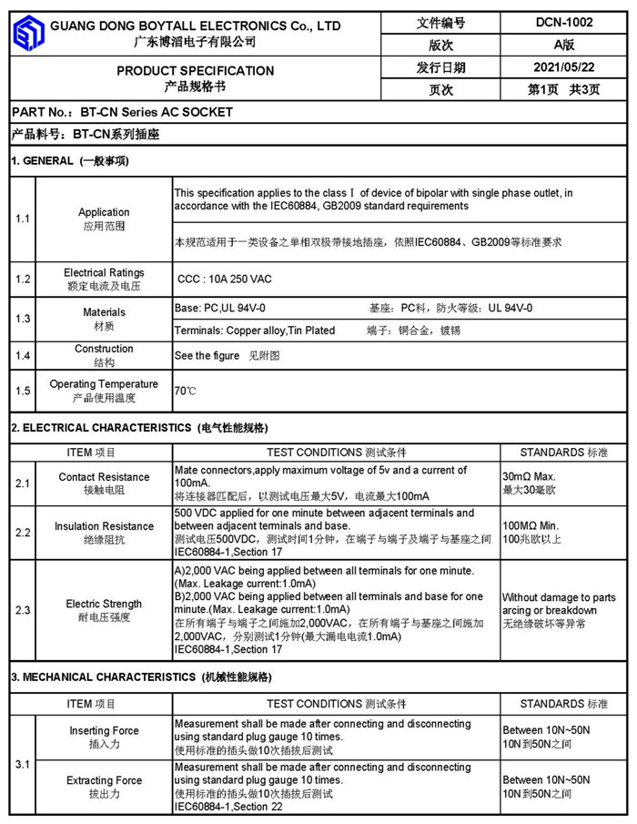 Your current location > Home > Product list- Chinese socket series - BT-CN-5B
