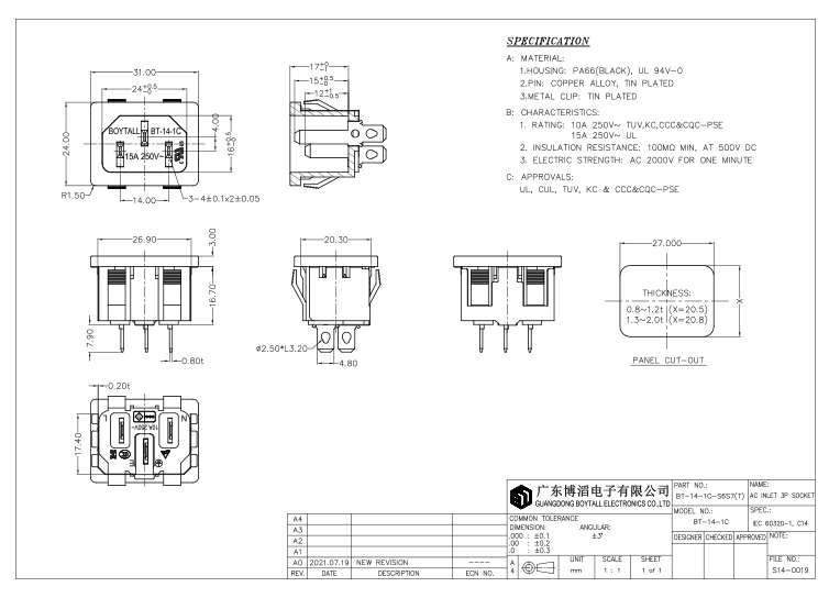 Your current location > Home > Product list- C14 Socket series - BT-14-1C-S6S7(T)